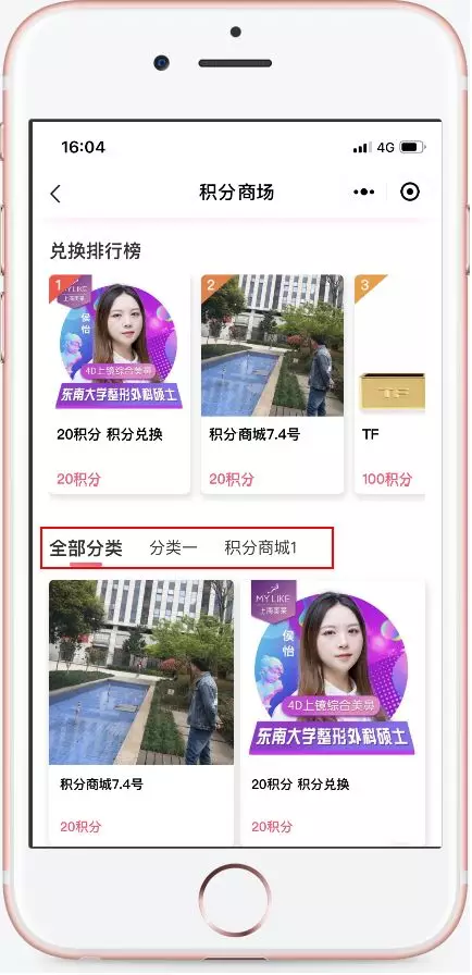 功能介绍:小程序端用户可以在积分商城页面查看到分类信息。
