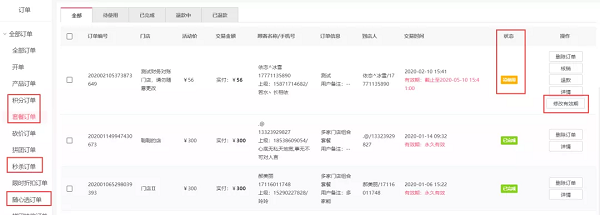 操作路径:订单 – 订单列表 - 秒杀,组合套餐,随心选,积分兑换订单 – 修改有效期